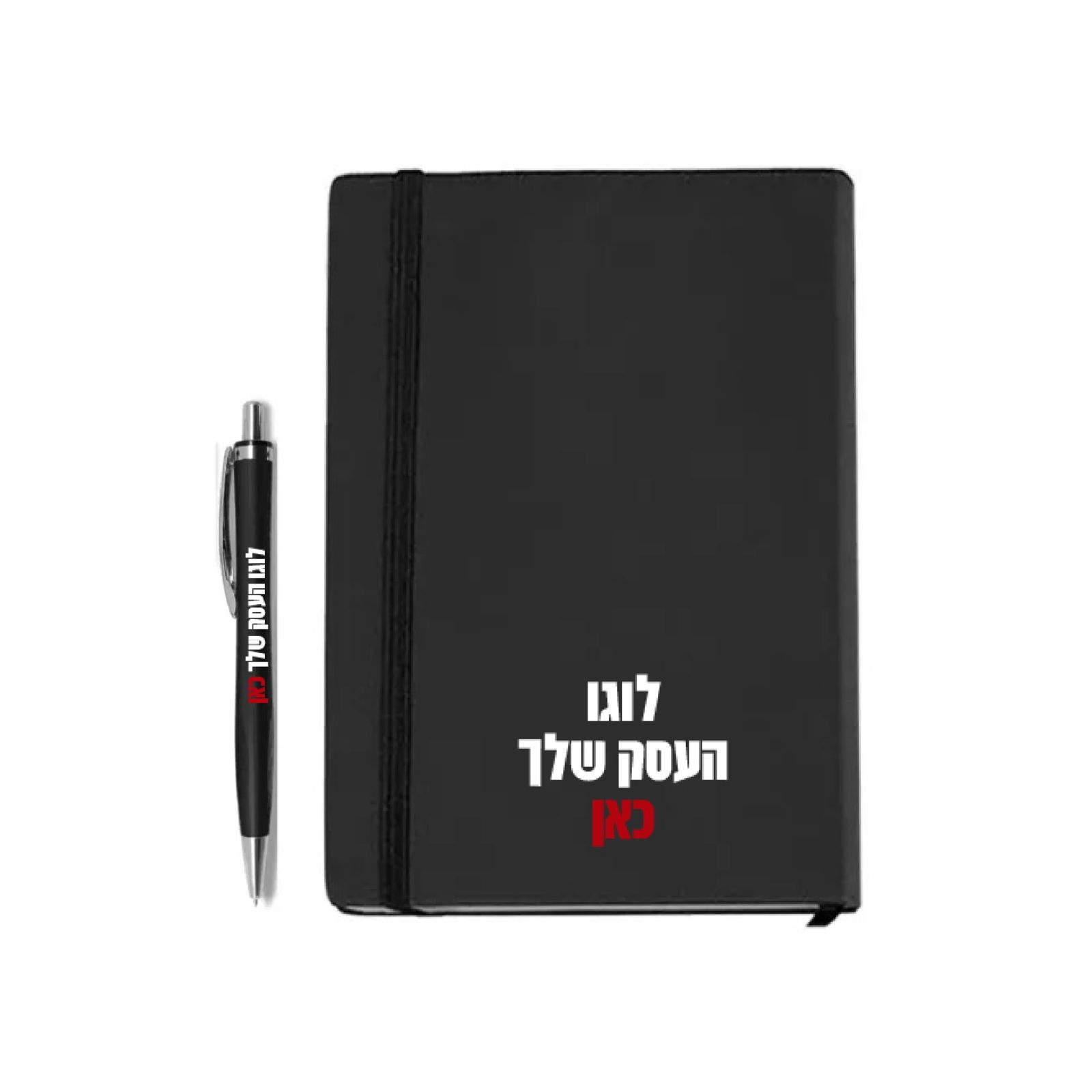 סט פנקס A5 עם עט תואם, בעיצוב אלגנטי ושימושי לעבודה יומיומית.