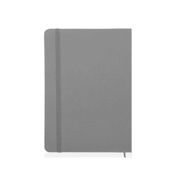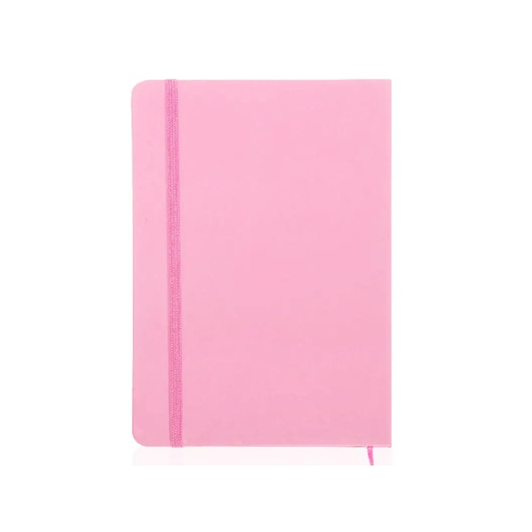 מחברת A5 ממותגת עם כריכה קשה, 80 דפים שורתיים וסגירת גומי תואמת. זמינה במבחר צבעים ומתאימה למיתוג עסקים, כנסים, מתנות לעובדים וערכות משרד.